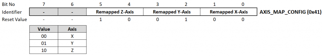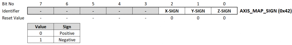 bno055_set_accel_slow_no_motion_enable();entscheidet ihr euch für den No-Motion- oder den Slow-Motion-Interrupt. - Die Limits (Thresholds) werden so, wie ihr sie übergebt, in die entsprechenden Register eingetragen. Um herauszubekommen, was der Wert bedeutet, müsst ihr im Datenblatt den Wert für das LSB (least significant bit) heraussuchen. Der Wert für das LSB ändert sich mit der Range.